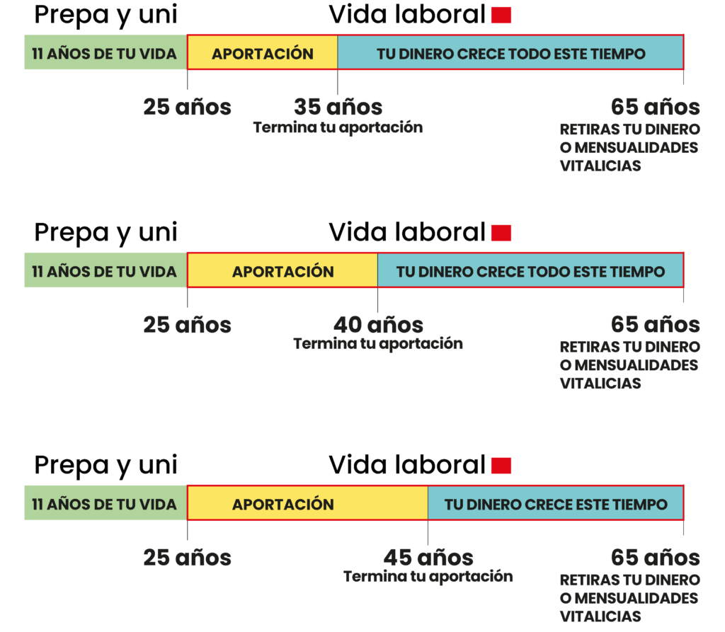 (si quieres retirar tu dinero a los 60 lo puedes hacer, considera que tu dinero crece desde el primer día de iniciar el plan, porque está protegido ante la inflación, eso te lo explico en la asesoría)